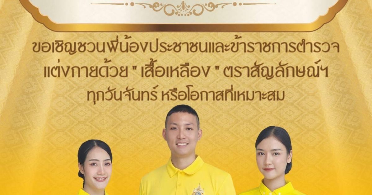 ขอเชิญชวนพี่น้องประชาชนและข้าราชการตำรวจ แต่งกายด้วยเสื้อเหลือง ตราสัญลักษณ์ ฯ ทุกวันจันทร์