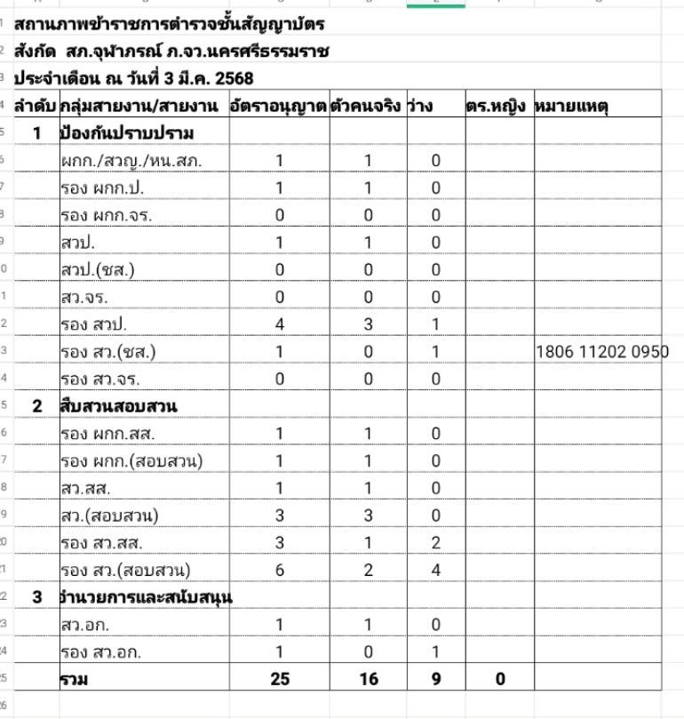 ข้อมูลอัตรากำลังพล สภ.จุฬาภรณ์ 26 March 2568 by Churapron / ข่าวจัดซื้อจัดจ้าง,งานธุรการและกำลังพล ข้อมูลอัตรากำลังพล สภ.จุฬาภรณ์ ประจำปี 2568 Facebook iconFacebookTwitter iconTwitterLINE iconLine