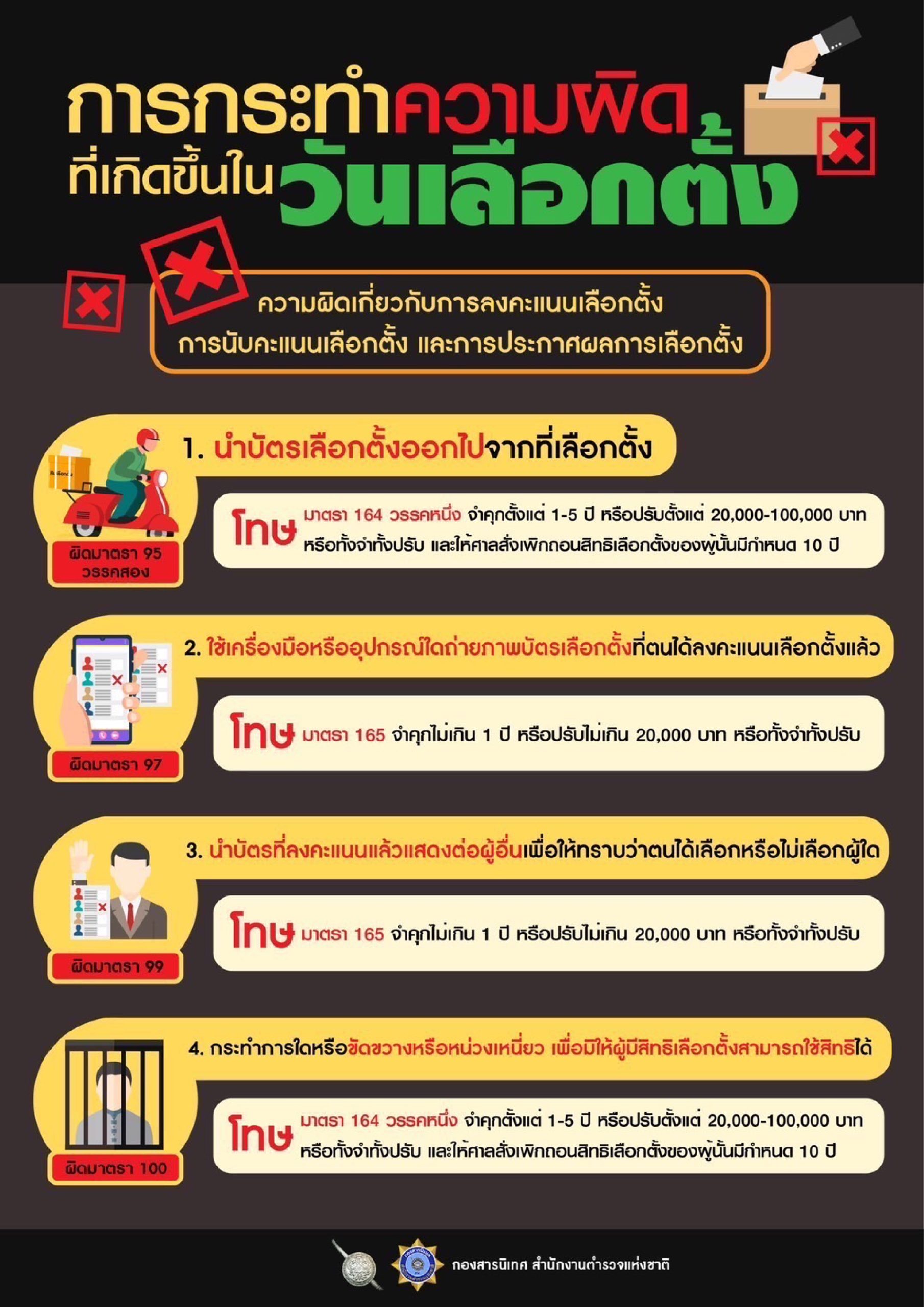 ตร. เตือน 8 ข้อ อย่าหาทำ -ในวันเลือกตั้ง- โทษหนัก ทั้งจำและปรับ