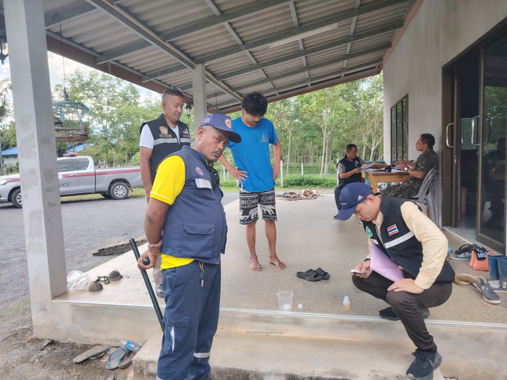 “นครศรี โมเดล” 22 April 2568 by Churapron / ข่าวประชาสัมพันธ์,ข่าวกิจกรรม,ข่าวประชาสัมพันธ์,ข่าวภารกิจผู้บังคับบัญชา วันนี้ 21 เมษายน 2568 ตั้งแต่เวลา 13.30 น. นายธีระยุทธ นาวีเดล นายอำเภอจุฬาภรณ์/ผอ.ศป.ปส.อ.จุฬาภรณ์ มอบหมายให้นายจำนงค์ น้ำพ่วง ปลัดอำเภอประจำตำบลทุ่งโพธิ์ นำชุดปฏิบัติการตำบลเพื่อขับเคลื่อนการป้องกันและแก้ไขปัญหายาเสพติด ตามแผนปฏิบัติการเร่งรัดการดำเนินงานป้องกัน ปราบปราม และแก้ไขปัญหายาเสพติดระยะเร่งด่วนในพื้นที่อำเภอจุฬาภรณ์ของตำบลทุ่งโพธิ์ ลงพื้นที่ Re – Xray ค้นหาผู้เสพ/ ผู้ใช้ /ผู้ติดยาเสพติด เพื่อเข้าสู่กระบวนการบำบัดรักษา ตามโครงการ “นครศรี โมเดล” ในพื้นที่ตำบลทุ่งโพธิ์ อำเภอจุฬาภรณ์ จังหวัดนครศรีธรรมราช Facebook iconFacebookTwitter iconTwitterLINE iconLine
