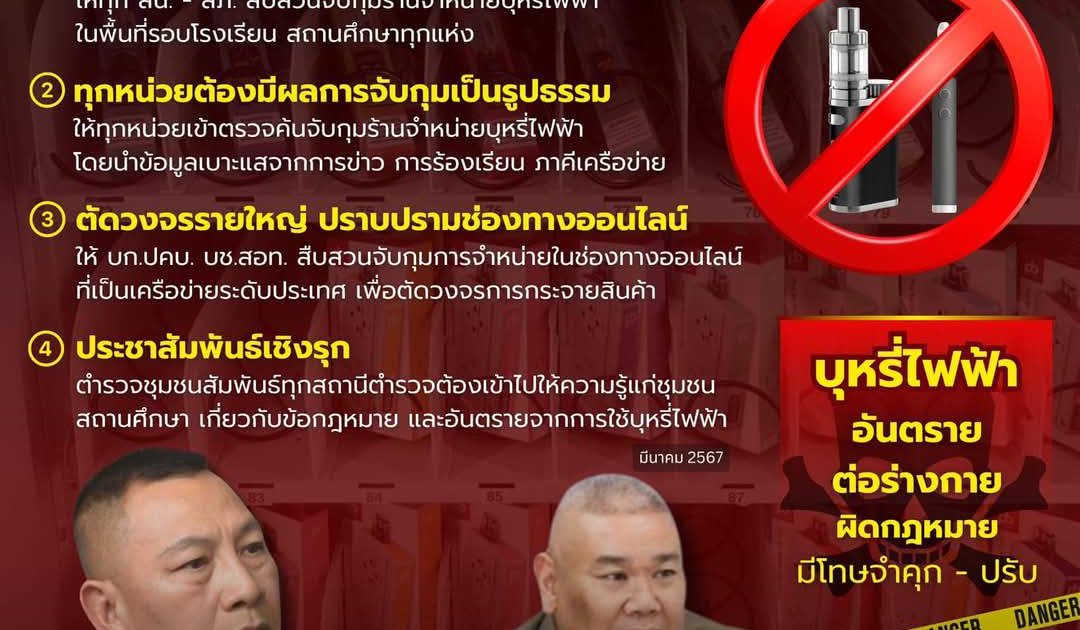 มาตรการเข้ม ปราบปรามบุหรี่ไฟฟ้า 27 February 2568 by Churapron / ข่าวประชาสัมพันธ์ 4 มาตรการเข้มปราบปรามบุหรี่ไฟฟ้า Facebook iconFacebookTwitter iconTwitterLINE iconLine
