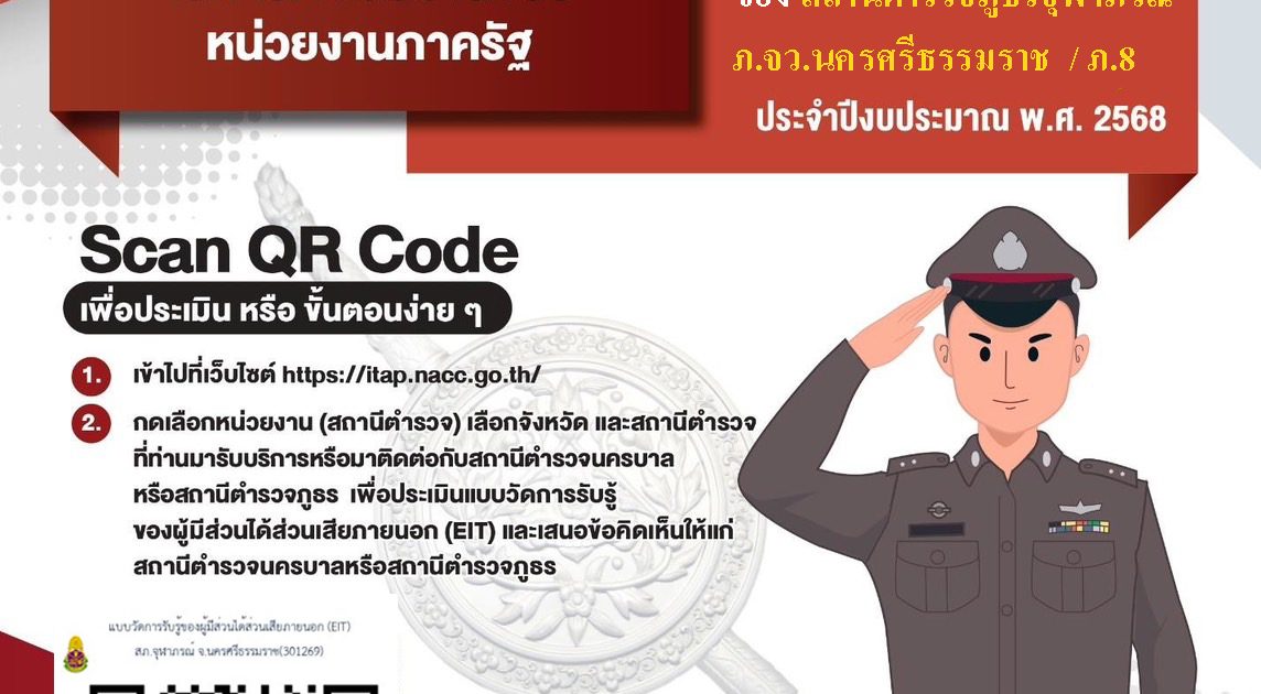 ร่วมประเมินคุณธรรมและความโปร่งใสในการดำเนินงาน สถานีตำรวจภูธรจุฬาภรณ์ ประจำปีงบประมาณ พ.ศ.2568