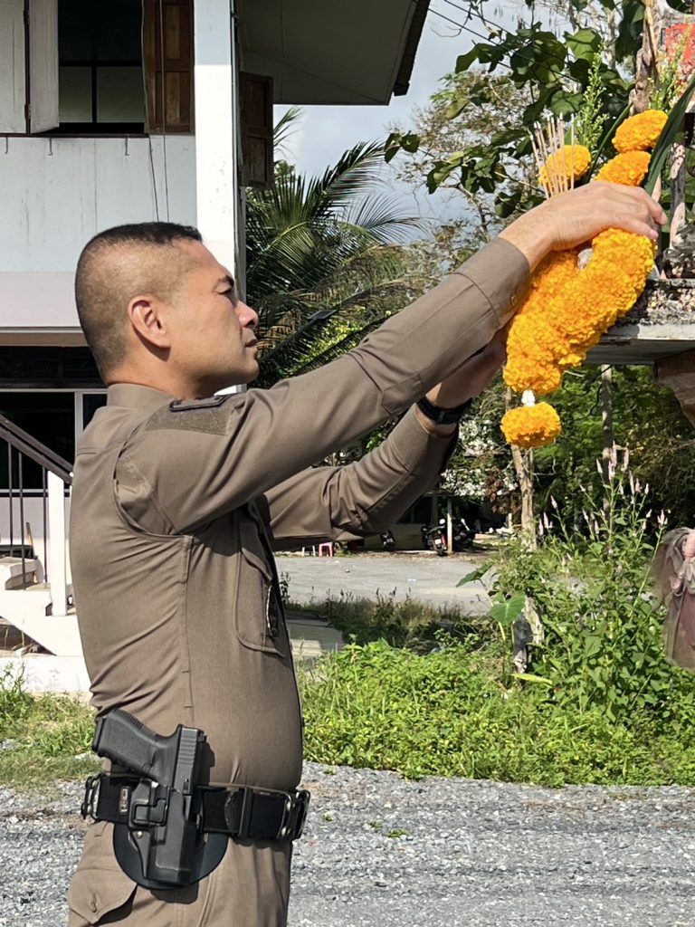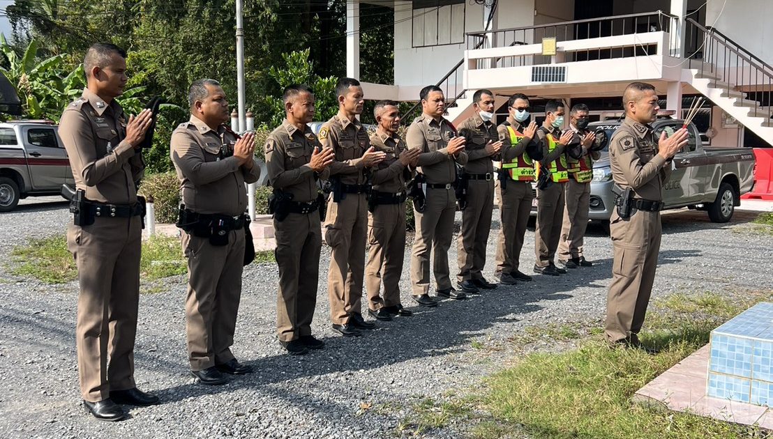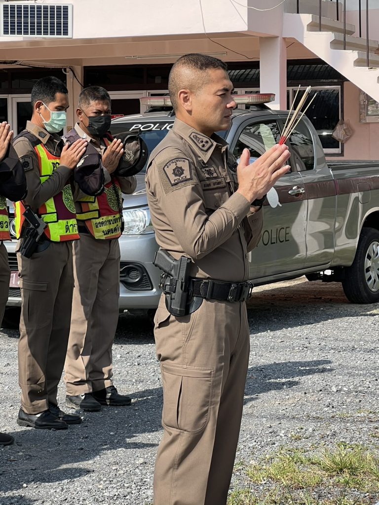 สักการะศาลพระภูมิเจ้าที่ ประจำที่พักสายตรวจนาหมอบุญ