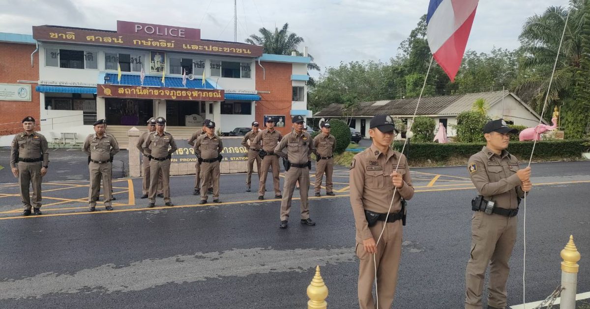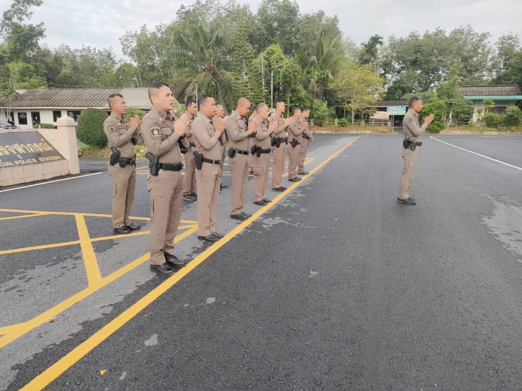สายตรวจรถยนต์ รถจักรยานยนต์ สิบเวร ผลัดใหม่ – ผลัดเก่า จนท.ธุรการ เข้าแถวเคารพธงชาติ สวดมนต์ไหว้พระ กล่าวบทปลงใจ อุดมคติตำรวจ