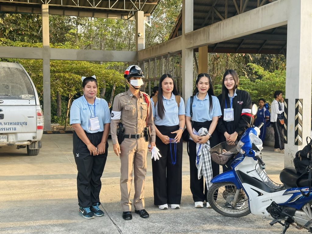 อำนวยความสะดวกด้านการจราจร ให้แก่คณะครูและนักเรียนโรงเรียนวัดนาหมอบุญ ในกิจกรรมทัศนศึกษาแหล่งเรียนรู้