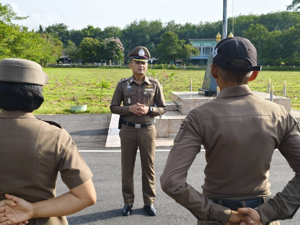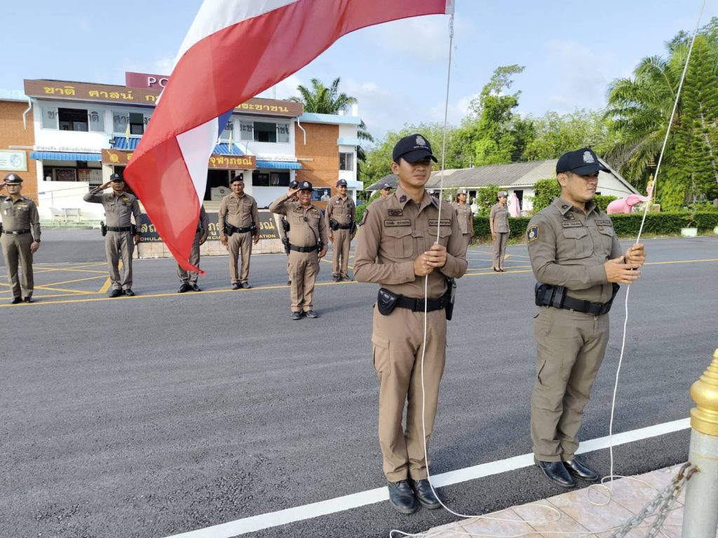 เข้าแถวเคารพธงชาติ 30 June 2568 by Churapron / ข่าวภารกิจผู้บังคับบัญชา 30 มิ.ย.68 เวลา 08.00 น.พ.ต.อ.ธนพล เยาวพักตร์ผกก.สภ.จุฬาภรณ์ร.ต.ต.ประสิทธิ์ ช่วยเมืองรอง สว(ป.)ฯเรียกแถวสายตรวจรถยนต์ รถจักรยานยนต์ สิบเวร ผลัดใหม่ – ผลัดเก่า จนท.ธุรการ เข้าแถวเคารพธงชาติ สวดมนต์ไหว้พระ กล่าวบทปลงใจ อุดมคติตำรวจ ตรวจทรงผมเครื่องแต่งกาย ชี้แจงข้อสั่งการ ภารกิจประจำวัน ก่อนออกปฏิบัติหน้าที่ Facebook iconFacebookTwitter iconTwitterLINE iconLine