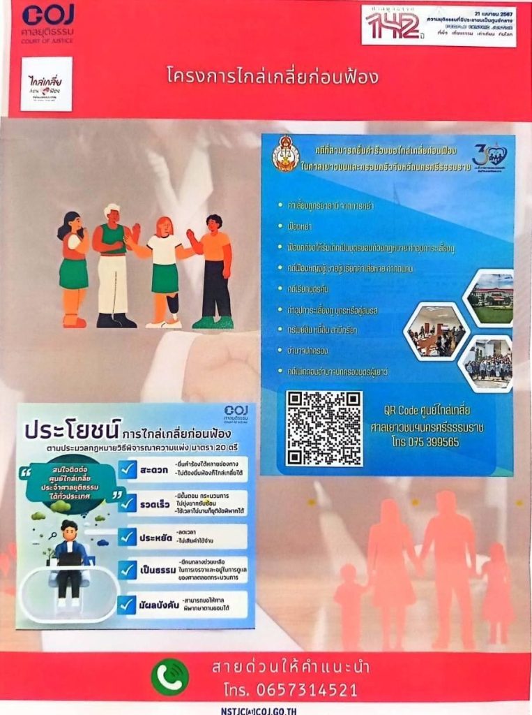 แจ้งข่าวประชาสัมพันธ์ การไกล่เกลี่ยก่อนฟ้อง 17 June 2567 by Churapron / ข่าวประชาสัมพันธ์ สภ.จุฬาภรณ์ ขอแจ้งข่าวประชาสัมพันธ์ การไกล่เกลี่ยก่อนฟ้อง รายละเอีนดดังนี้ครับ Facebook iconFacebookTwitter iconTwitterLINE iconLine