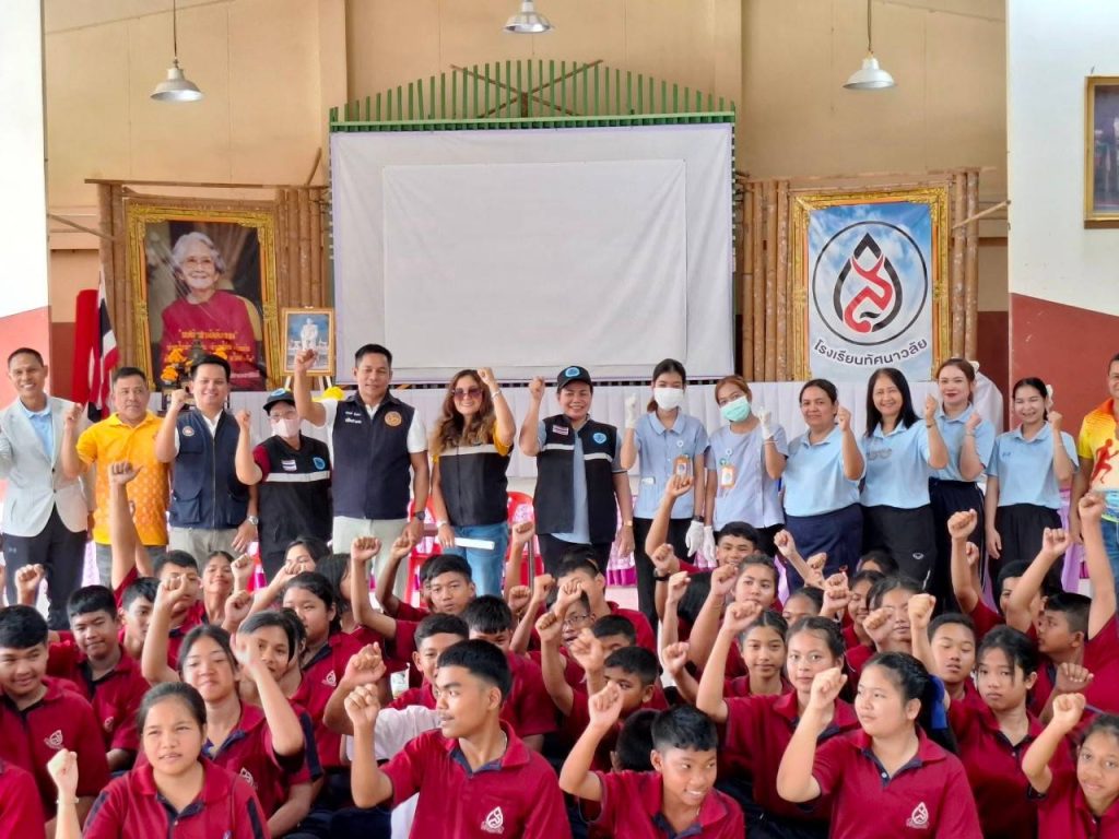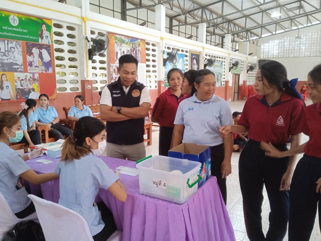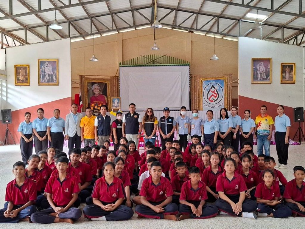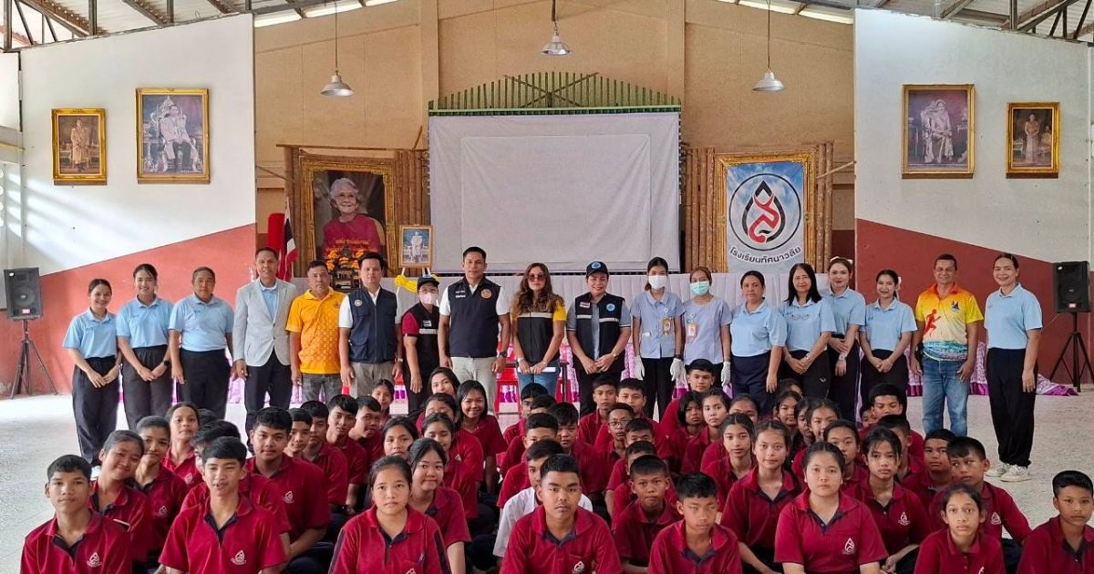 โครงการ 1ตำรวจ 1โรงเรียน 13 February 2568 by Churapron / ข่าวประชาสัมพันธ์,ข่าวกิจกรรม,ข่าวประชาสัมพันธ์,ข่าวภารกิจผู้บังคับบัญชา 11 ก.พ.2568 เวลา 13.30 น.ภายใต้การอำนวยการสั่งการของพ.ต.อ.ธวัชชัย สังฆมิตกลผกก.สภ.จุฬาภรณ์พ.ต.ท.เรวัตร แก้วจำรัส รอง ผกก.ป.สภ.จุฬาภรณ์พ.ต.ท.ณรงค์ ทองนุ่นสวป.สภ.จุฬาภรณ์ได้สั่งการให้ ร.ต.อ.เกียรติภูมิ รอดบัวทอง รองสวปฯ รับผิดชอบโครงการ 1ตำรวจ 1โรงเรียน ซึ่งได้รับผิดชอบโรงเรียนทัศนาวลัยได้เข้าไปร่วมตรวจสารเสพติดกับฝ่ายอำเภอจุฬาภรณ์ อสม. รพ.สต.บ้านกาโหเหนือ ให้แก่นักเรียน บุคลากร ภายในโรงเรียนทัศนาวลัย ไม่พบสารเสพติด เป็นโรงเรียนสีขาวปลอดยาเสพติด Facebook iconFacebookTwitter iconTwitterLINE iconLine