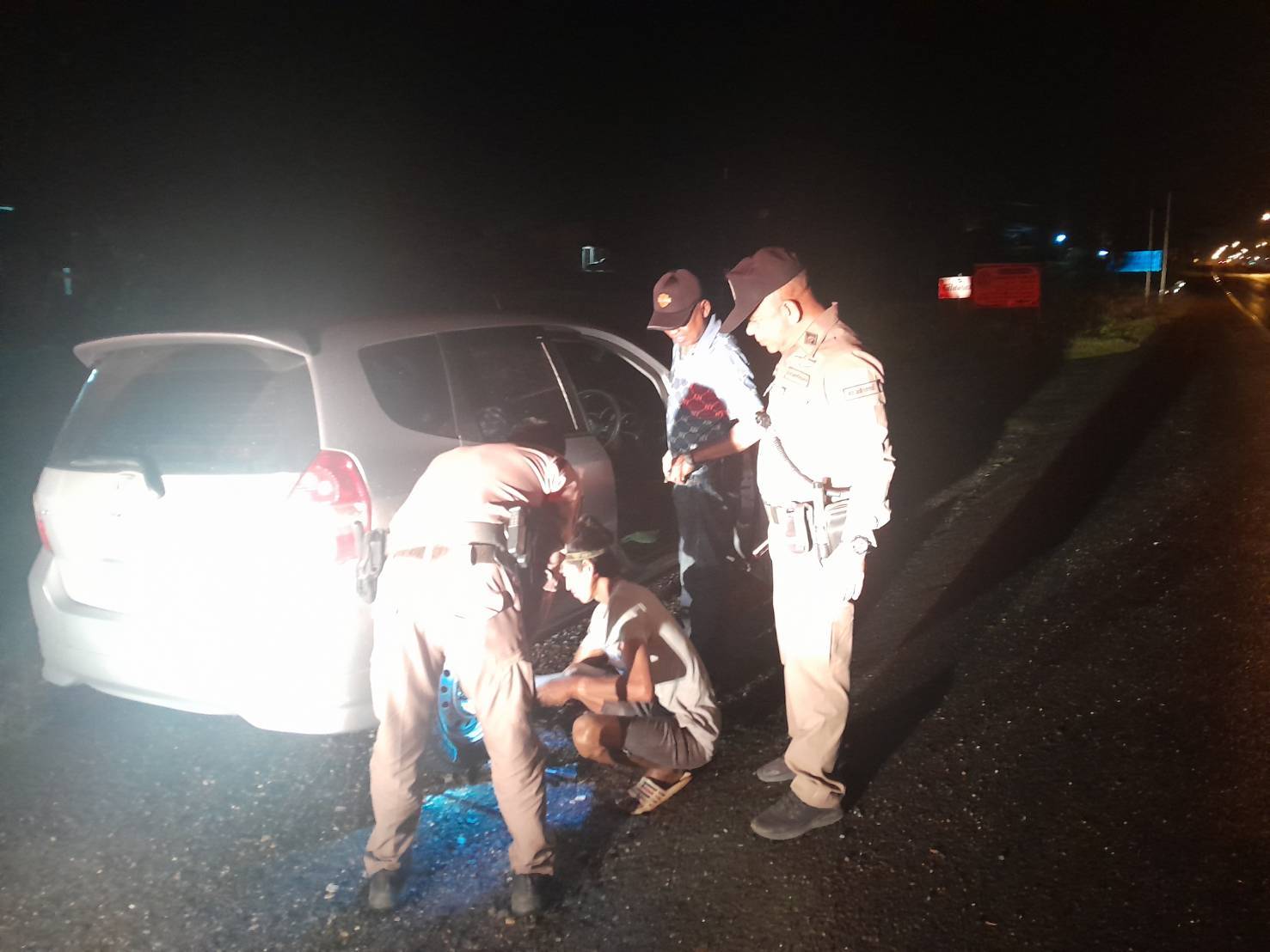 ช่วยเหลือประชาชน รถยนต์เก๋งยางรั่วบริเวณริมถนนสายเอเชีย41 ฝั่งขาล่อง