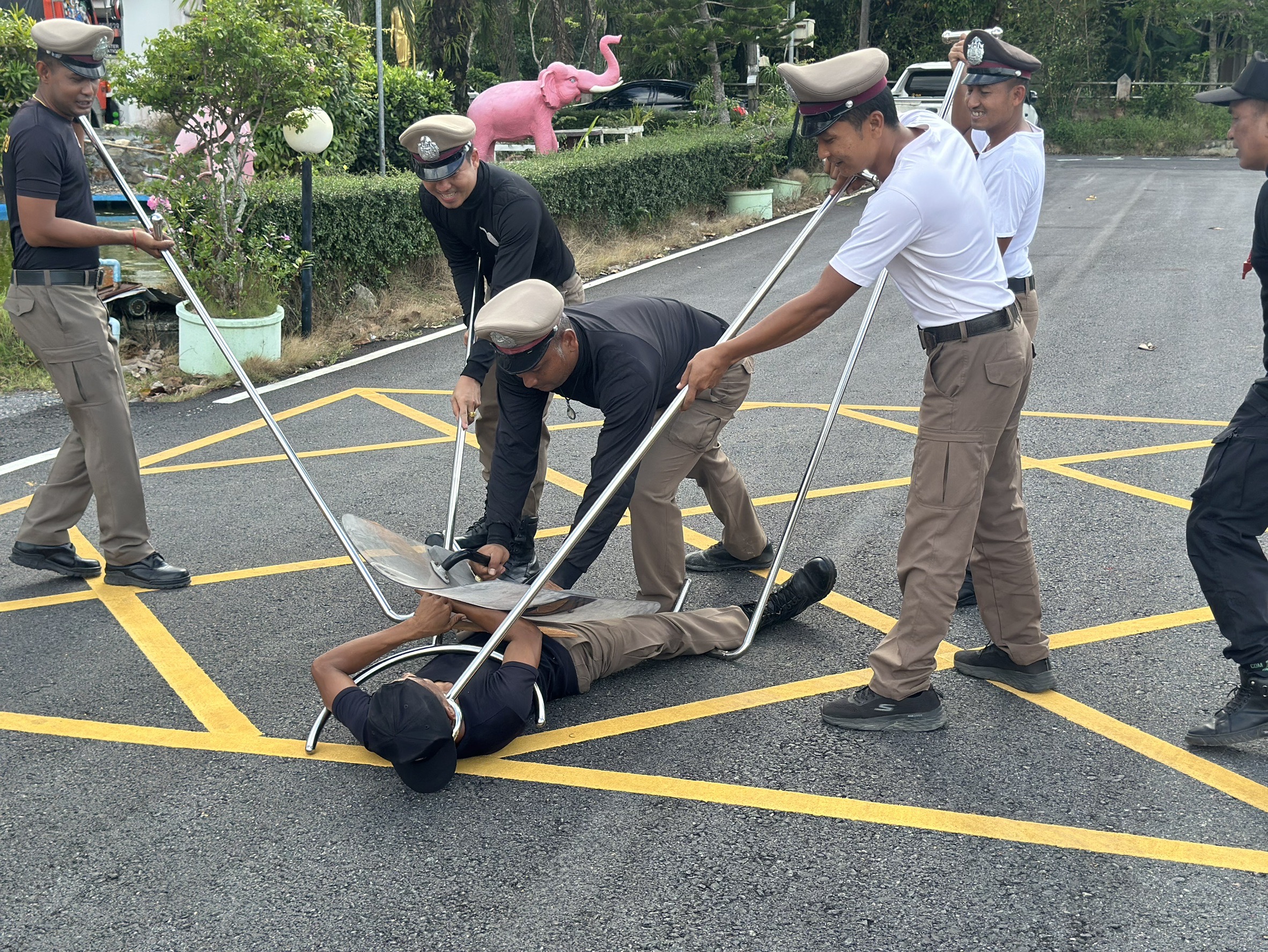 26 ก.พ.2568 ⏰ 15.00 น. 👮‍♂️พ.ต.ท.ณรงค์ ทองนุ่น สวป.ฯ👮‍♂️ครูฝึกยุทธวิธีพร้อมข้าราชการตำรวจ สภ.จุฬาภรณ์ ❇️ลงแถวทำการฝึกประจำสัปดาห์ เพื่อเตรียมความพร้อมในการตรวจการฝึกประจำปี การฝึกประกอบด้วย 2ชุด1.ยุทธวิธีตำรวจการยิงปืน 2.ยุทธวิธีตำรวจ การใช้ไม้ง่าม จับกุมบุคคลคลุ้มคลั่ง 🏟️ณ สนามหน้าเสาธง / สนามเปตอง สภ.จุฬาภรณ์