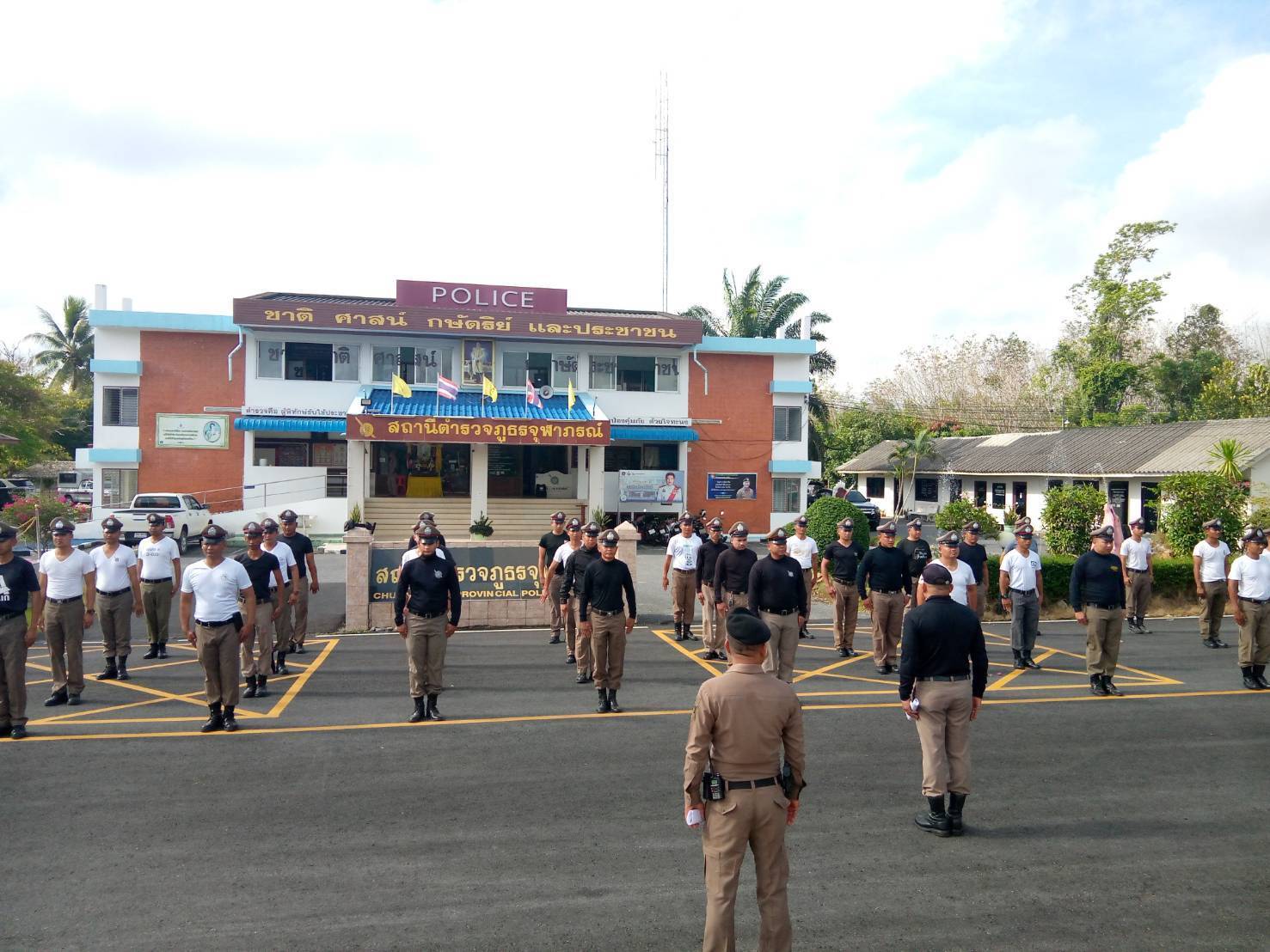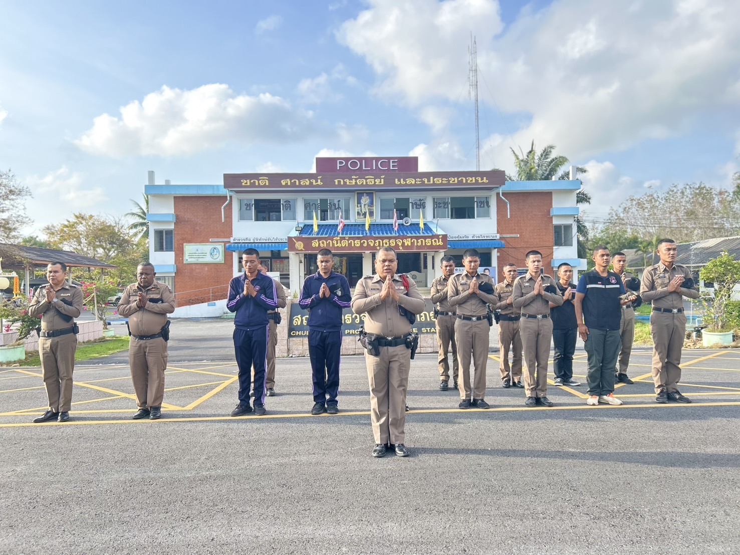 12 มี.ค.68 เวลา 09.00 น.พ.ต.อ.ธนพล เยาวพักตร์ ผกก.สภ.จุฬาภรณ์ มอบหมายให้พ.ต.ท.เรวัตร แก้วจำรัสรอง ผกก.ป.สภ.จุฬาภรณ์(ผู้ควบคุมการฝึก)พ.ต.ท.ณรงค์ ทองนุ่นสวป.ฯ (หัวหน้าครูฝึก)ร.ต.อ.เกียรติภูมิ รอดบัวทอง (ครูฝึก)ร.ต.ท.ประยูร รักใหม่ (ครูฝึก) ร.ต.ท.ชัยโย คงเมฆ (ครูฝึก) ด.ต.บุญนำชัย ชัยแก้ว (ครูฝึก)พร้อมข้าราชการตำรวจ 40 นาย ลงแถวฝึกวันพุธประจำสัปดาห์ ณ ลานฝึก สภ.จุฬาภรณ์
