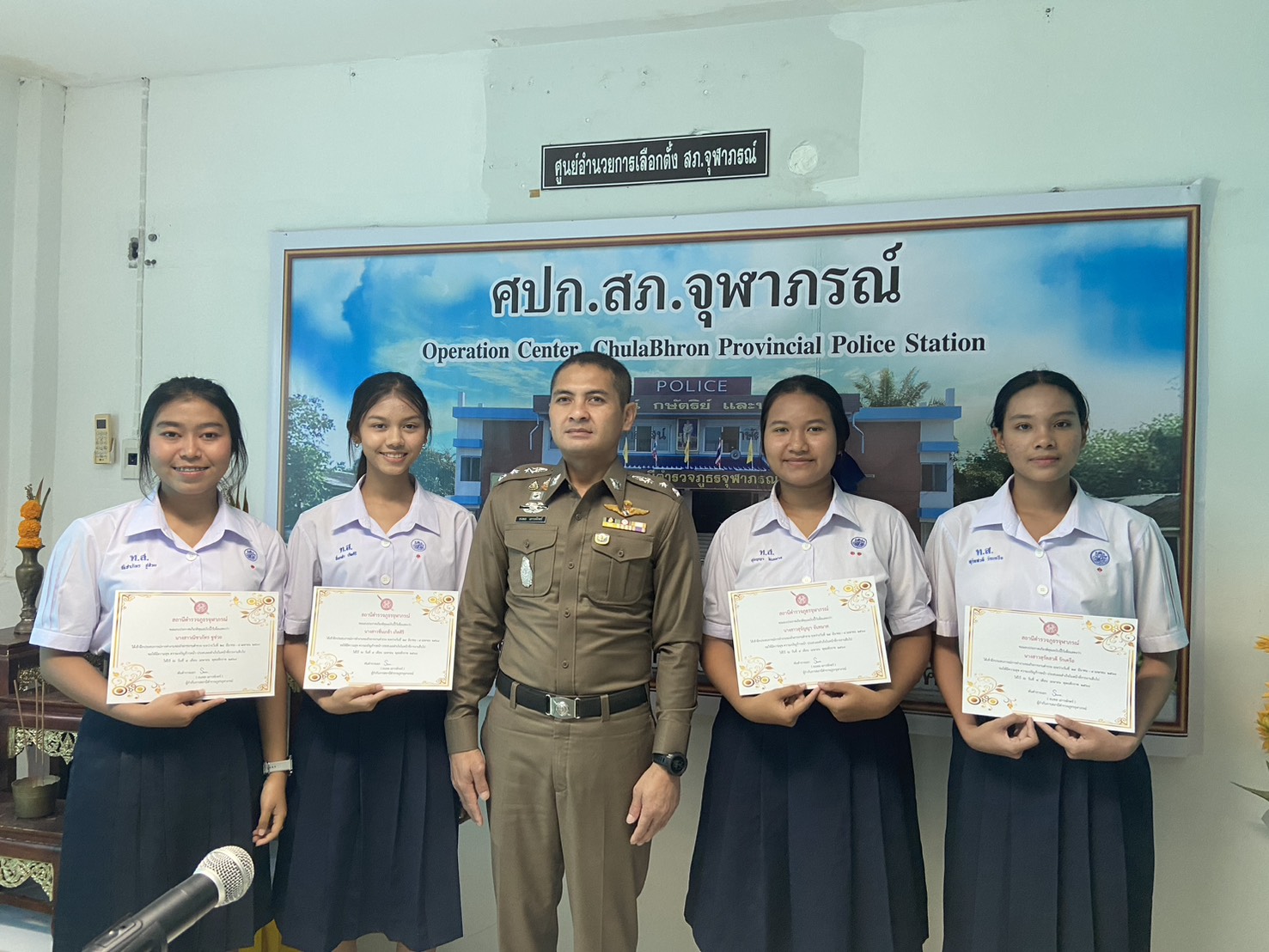 6 เม.ย. 2568เวลา 09.00-12.00 น. พ.ต.ท.ณรงค์ ทองนุ่น สวป.สภ.จุฬาภรณ์ ได้มาปล่อยแถว ชี้แจงการปฏิบัติในการตั้งจุดตรวจ และควบคุมการปฏิบัติ โดย ร.ต.ท.พิเชษฐ์ ขาวทอง รอง สว(ป).สภ.จุฬาภรณ์ หน.ชุด พร้อมกำลังรวม 9 นาย ร่วมกันปฏิบัติหน้าที่ตั้งจุดตรวจสัมพันธ์บนถนนสาย 41 ม.1 ต.นาหมอบุญ อ.จุฬาภรณ์ ผลการปฏิบัติ-ตรวจค้นรถยนต์ 35 คัน-ตรวจค้นรถ จยย. 10 คัน-ตรวจสอบบุคคลต่างด้าว 2 คน-จับกุมผู้ต้องหา ตาม พ.ร.บ.ยาเสพติด(ครอบครอง) 1 ราย 1 คน