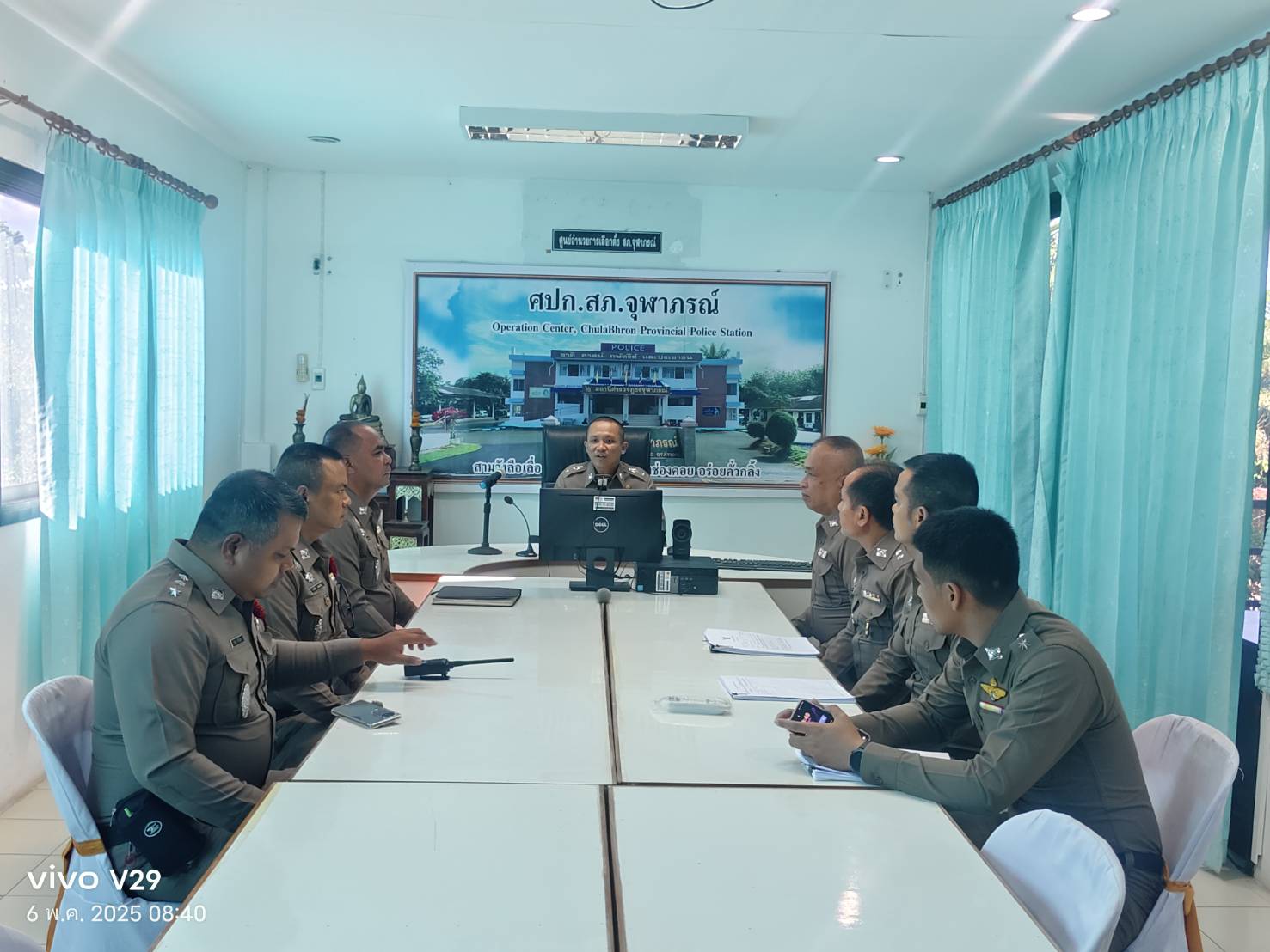 6 พฤษภาคม 2568 (เวลา 09.00น.) ………………………………………………. ภายใต้การอำนวยการของ พ.ต.อ.ธนพล เยาวพักตร์ ผกก.สภ.จุฬาภรณ์ ได้มอบหมายให้ พ.ต.ท.เรวัตร แก้วจำรัส รอง ผกก.ป.สภ.จุฬาภรณ์ เข้าร่วมประชุมหัวหน้าส่วนราชการ อ.จุฬาภรณ์ ณ ห้องประชุมนามเจ้าฟ้า ที่ว่าการอำเภอจุฬาภรณ์
