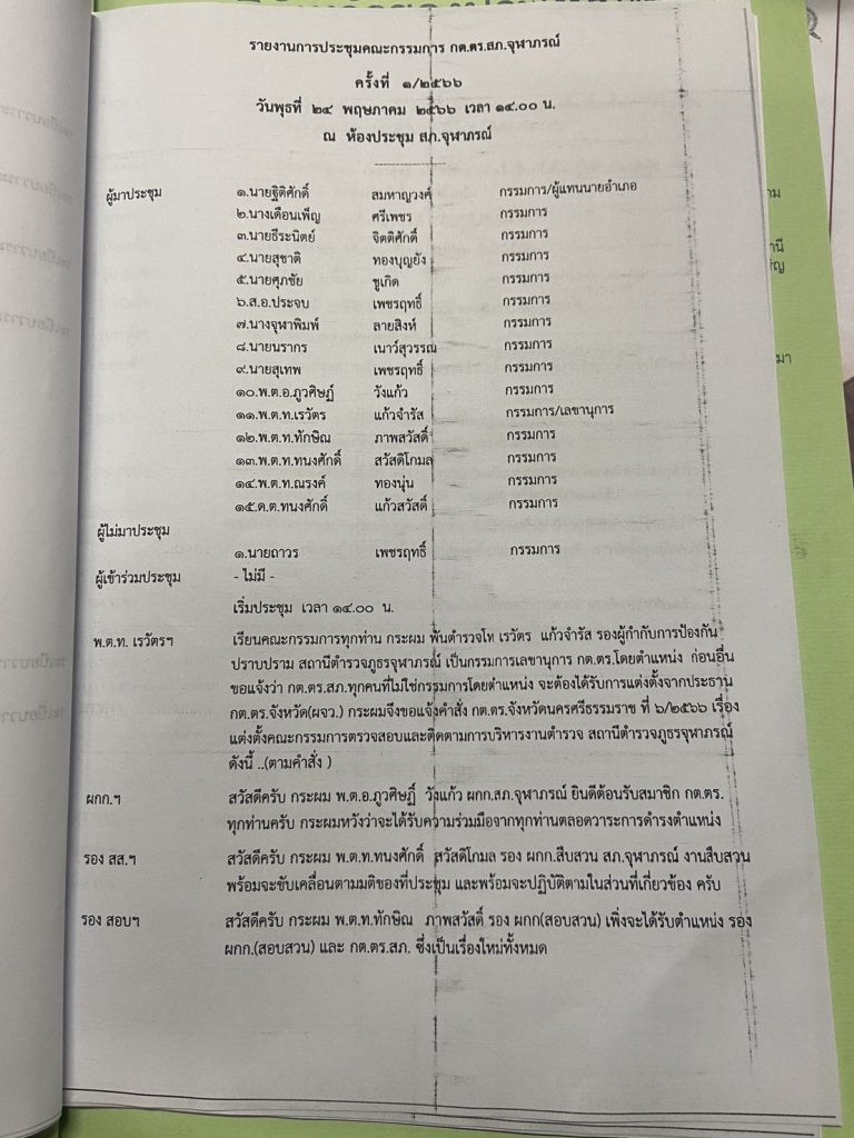 ผลการดำเนินงานของ กต.ตร. พฤศจิกายน 2566 (*ไม่มีผลการดำเนินงาน)