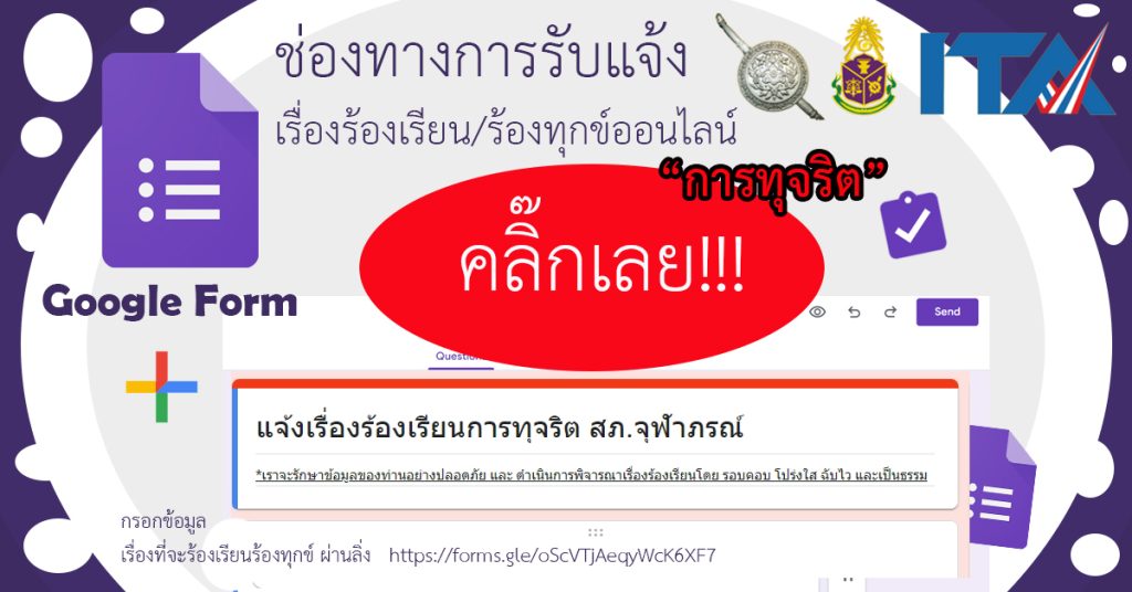 ช่องทางการรับแจ้งการทุจริตเรื่องร้องเรียน ร้องทุกข์ออนไลน์ Google From